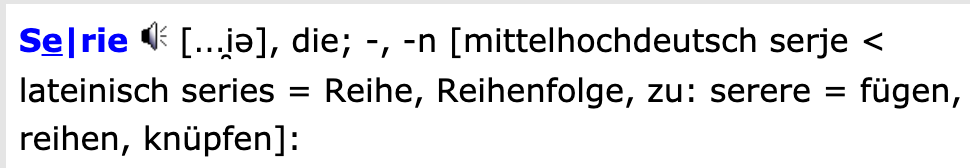 Dass Algorithmus von den meisten Algorüthmus ausgesprochen (und in der Folge dann vielleicht bald auch mit falschem Y geschrieben) wird, daran hab ich mich schon fast gewöhnt. Dass hingegen auf SRF das Wort Serie konsequent (und entgegen der Etymologie und der Duden-Empfehlung) auf der zweiten Silbe und mit langen iii gesprochen wird, lässt mich jedes Mal erschaudern.